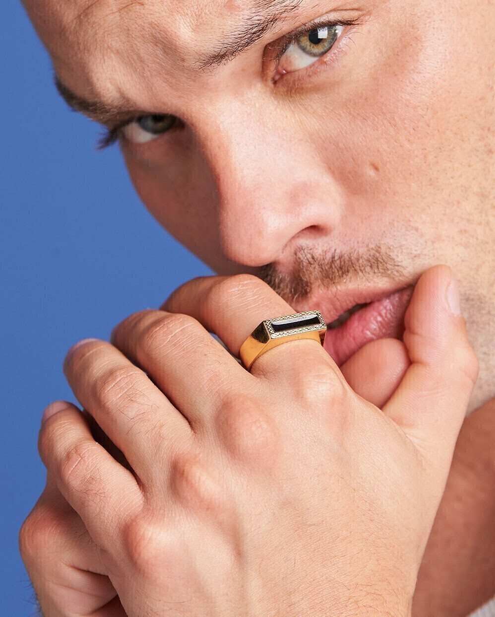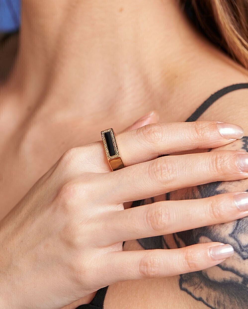 O anel Change é “o match perfeito” pra qualquer ocasião! Com linhas retas, acabamento lixado e resina preta, ele traz um toque rústico na medida pra quem curte versatilidade – seja no dia a dia, seja naquele evento mais elegante.