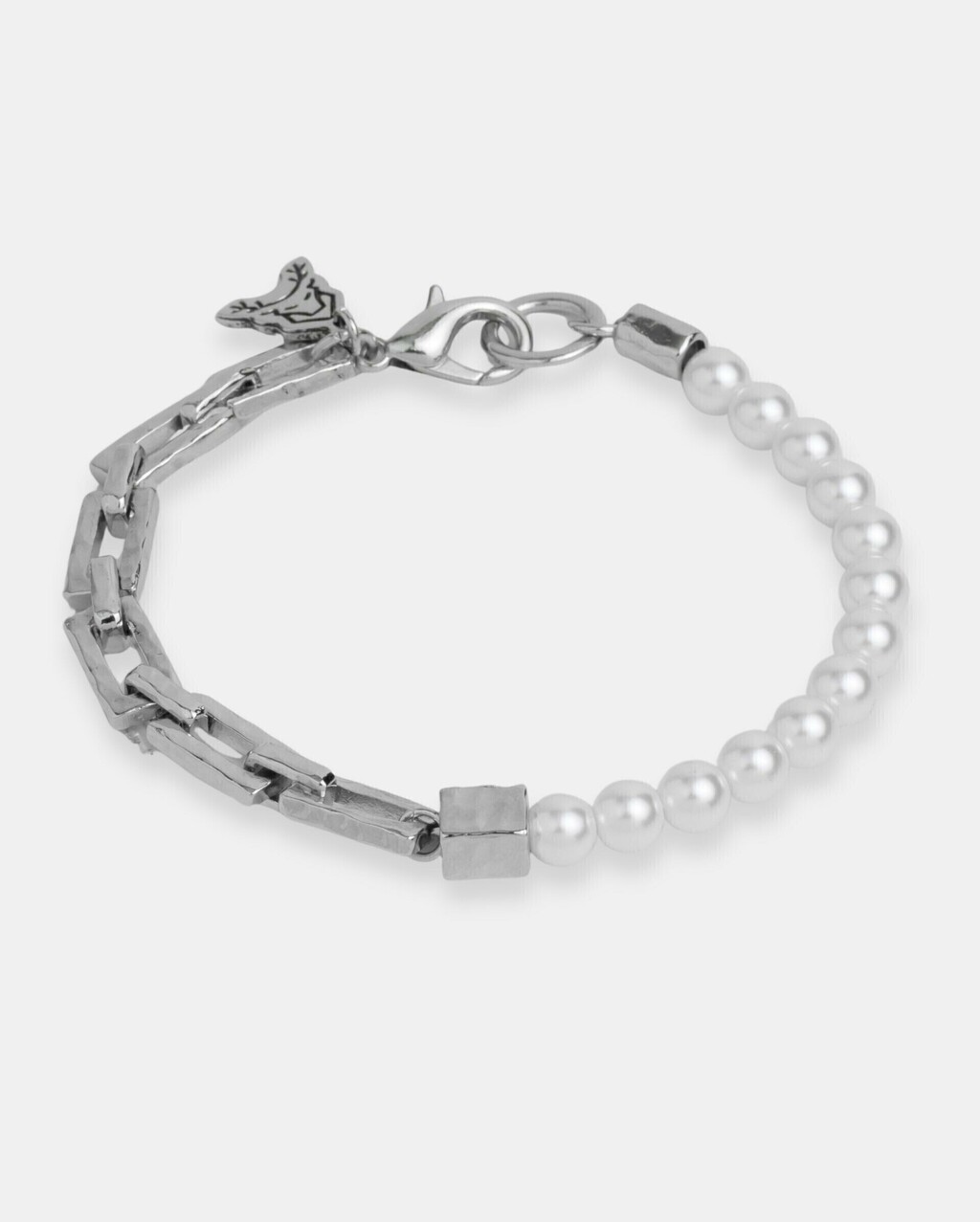 A Pulseira Core Pérola é feita elo a elo, à mão, trazendo corrente quadrada com acabamento rústico que contrasta com o brilho natural das pérolas. Ideal para quem busca autenticidade sem perder a sofisticação